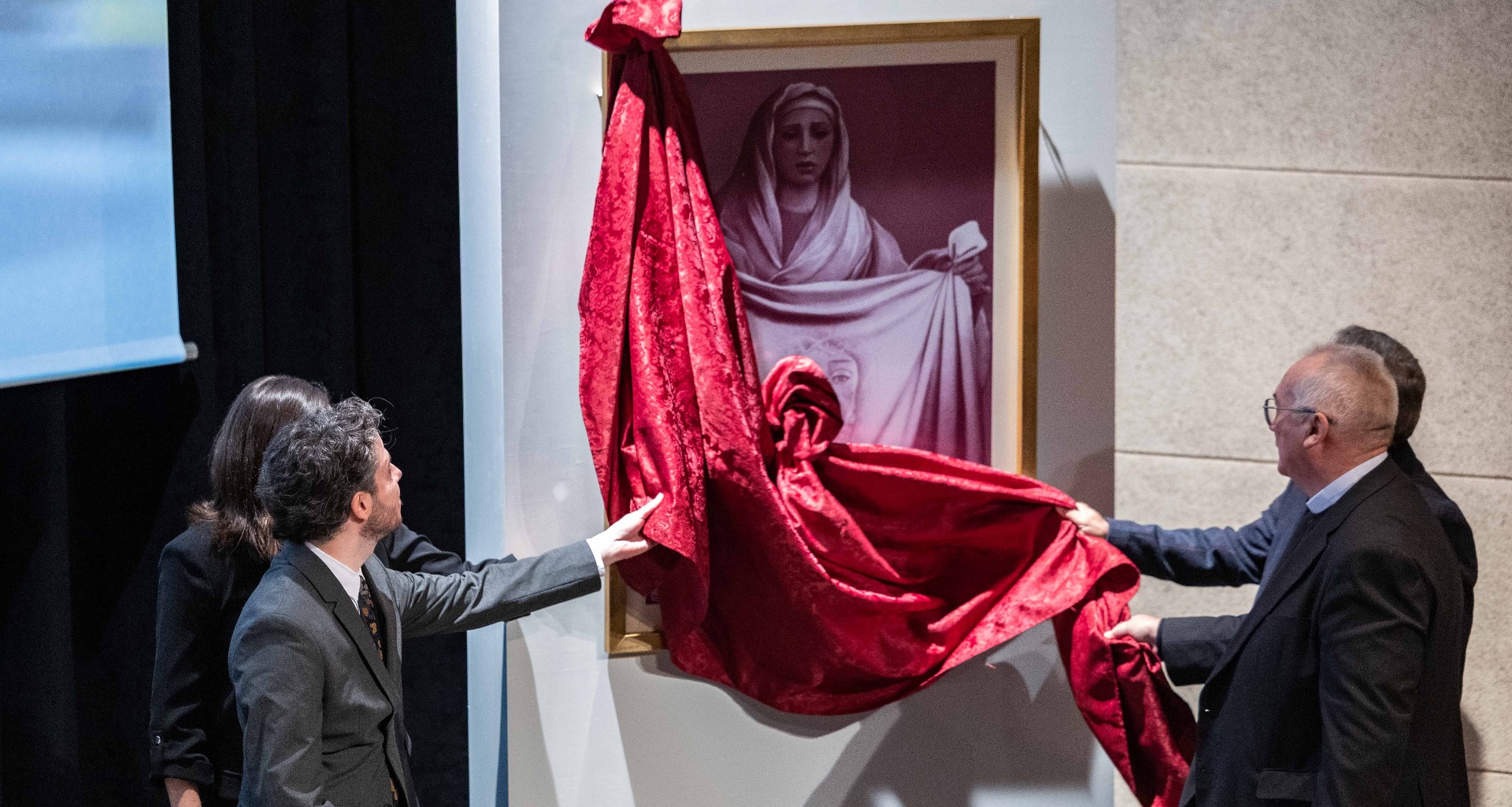 El propio autor, Alfredo Martínez, en su intervención ha querido transmitir que “la Santa Faz ha sido un tema recurrente a lo largo de mi trayectoria artística. Desde mi primer trabajo para nuestra Semana Santa, el paño de la Santa Mujer Verónica de 2018, esta idea ha rondado por mi cabeza y he podido plasmarla de diversas formas. En esta ocasión, la he llevado al lenguaje de la cartelería, donde la Verónica nos muestra el rostro de Jesús Nazareno mirándonos de frente. Es en estos ojos llenos de mansedumbre donde La Isla se ha mirado a través de los siglos y con los que he querido transmitir lo que significa la Semana Santa para mí: Él es el centro de todo, el corazón de nuestra historia y nuestra fe.”